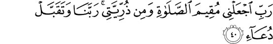 "Wahai Tuhanku, jadikanlah aku dan zuriat keturunanku orang yang mendirikan sembahyang, wahai Tuhanku perkenankanlah doaku.